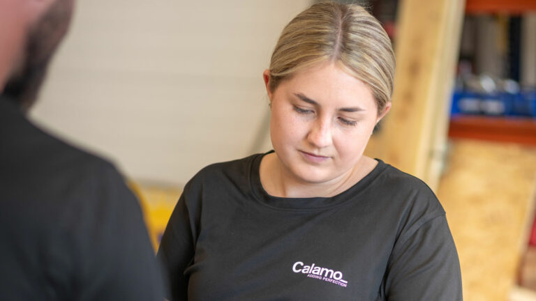 Amanda Fredriksson jobbar som operatör på Calamos avdelning för legotjänster och elektropolering. Varierande arbetsuppgifter och en stark gemenskap är framför allt det som får henne att trivas på Calamo.
